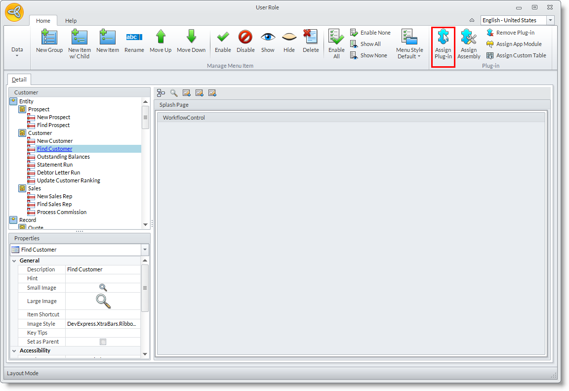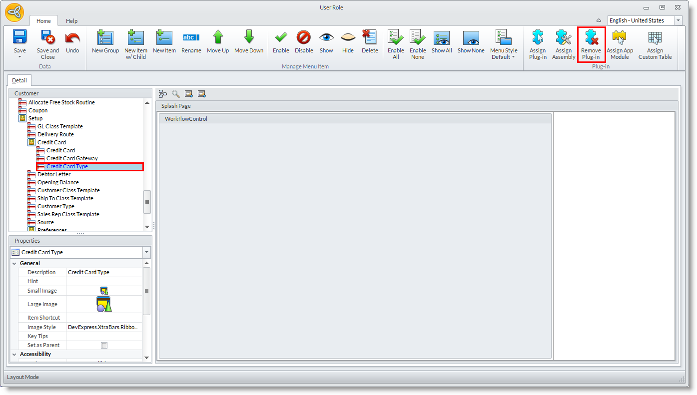 Only custom plug-ins can be removed from the User Role layout form