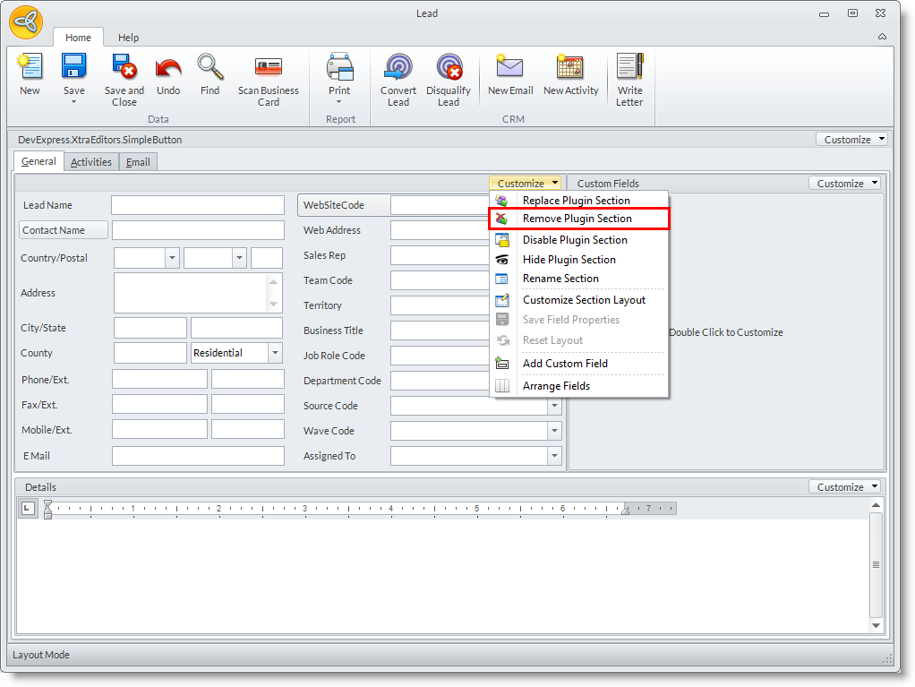 - There will be many forms from the Detail tab to select from. Highlight one item from the Detail tab and click Remove Plug-in from the menu bar. .
