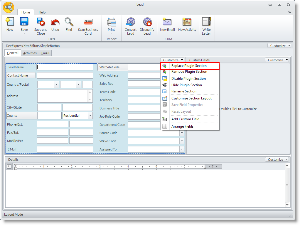 From here you may click the Customize dropdown list and select Replace Plugin Section.