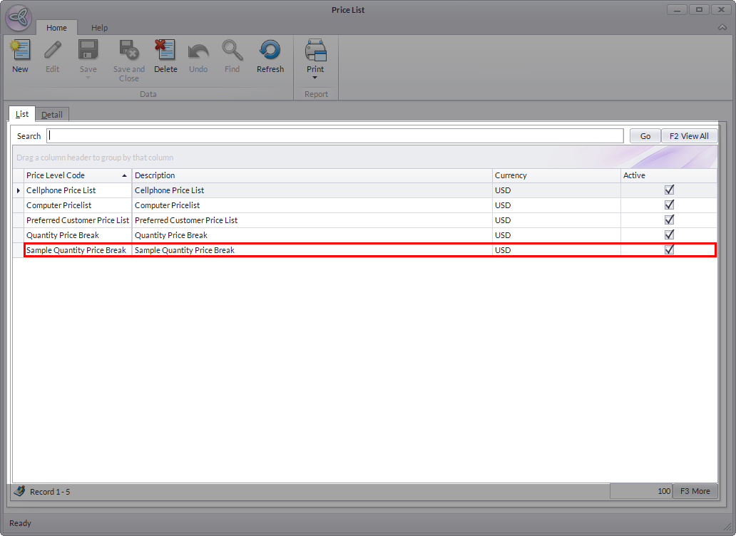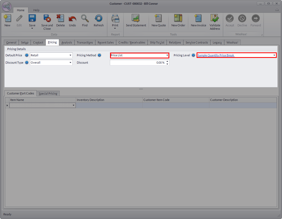 - Search the specific customer with the Quantity Price Break pricing from the Customer Lookup list.