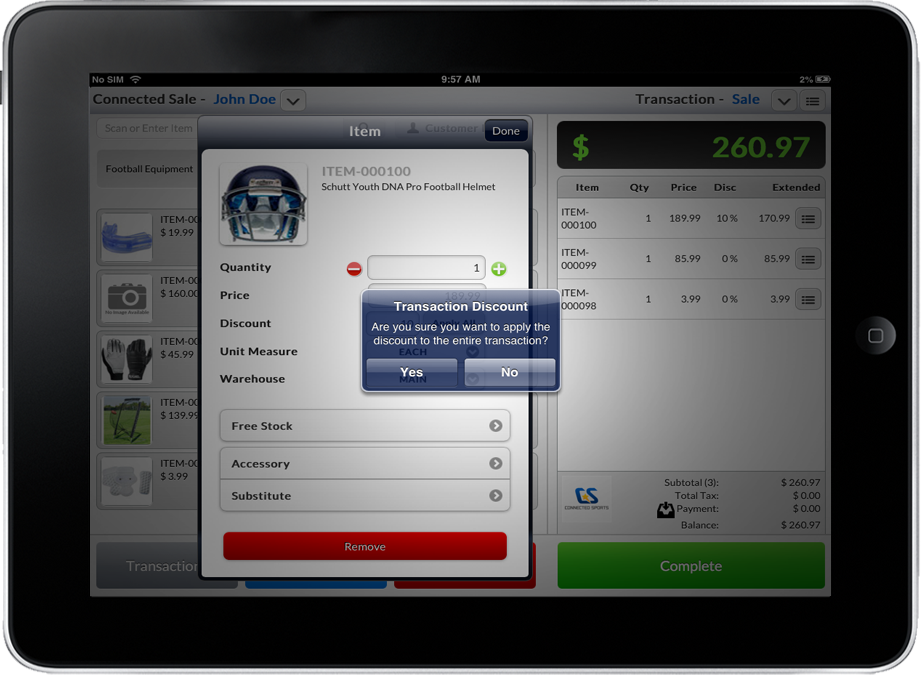 - Tap on the Apply All button. A confirmation message will appear, click Yes to apply discount to all items in the transaction.