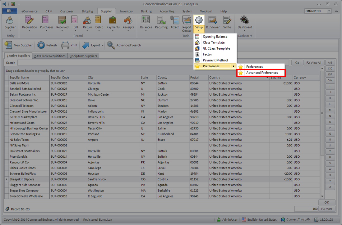 Go to Supplier > Setup > Preferences > Advanced Preferences to launch the form.