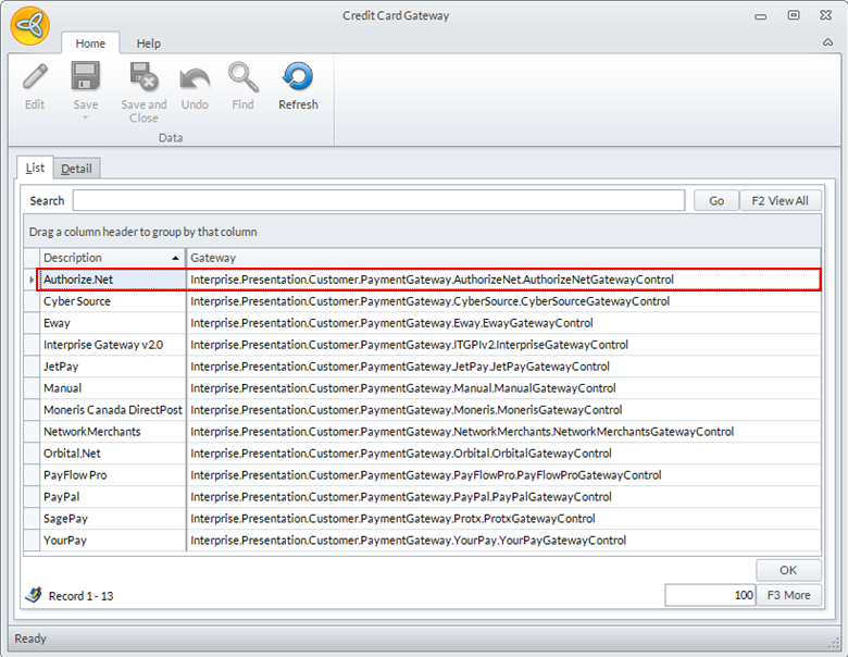 - Select Authorize.Net and the gateway details will be displayed.