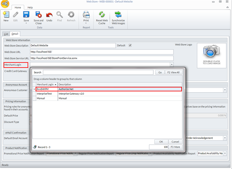 - In the Merchant Login field, select Authorize.Net from the dropdown list.