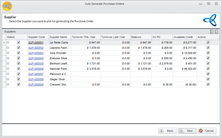 - Go to Supplier module > Purchases > Auto Generate Purchases. The Auto Generate Purchase Order Wizard will be displayed.