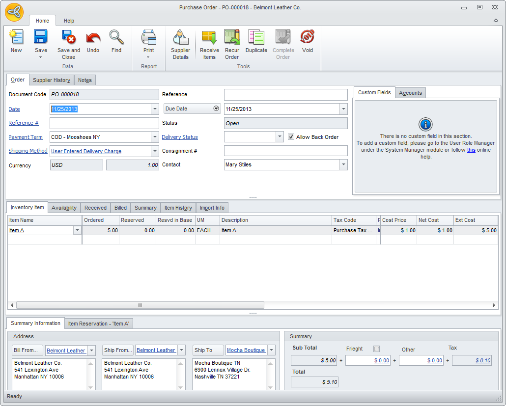 - Modify the PO details as needed. Once done, click Save and Close to apply changes.