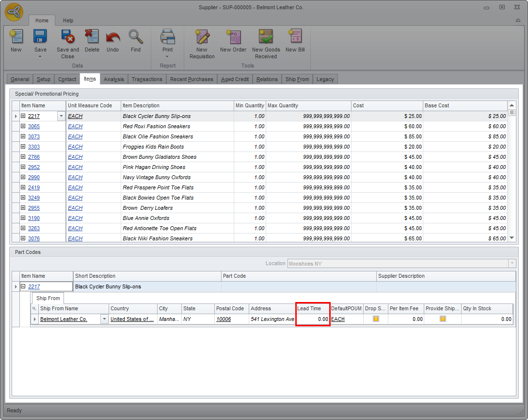 If you want to set up lead times for multiple items specific to a supplier,