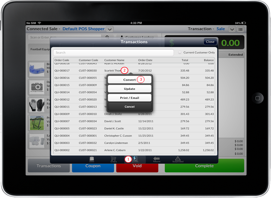 - The products in selected Quote will be loaded in ConnectedSale Item List; user can either change the quantity, price, discount of an item or even add products to the list.