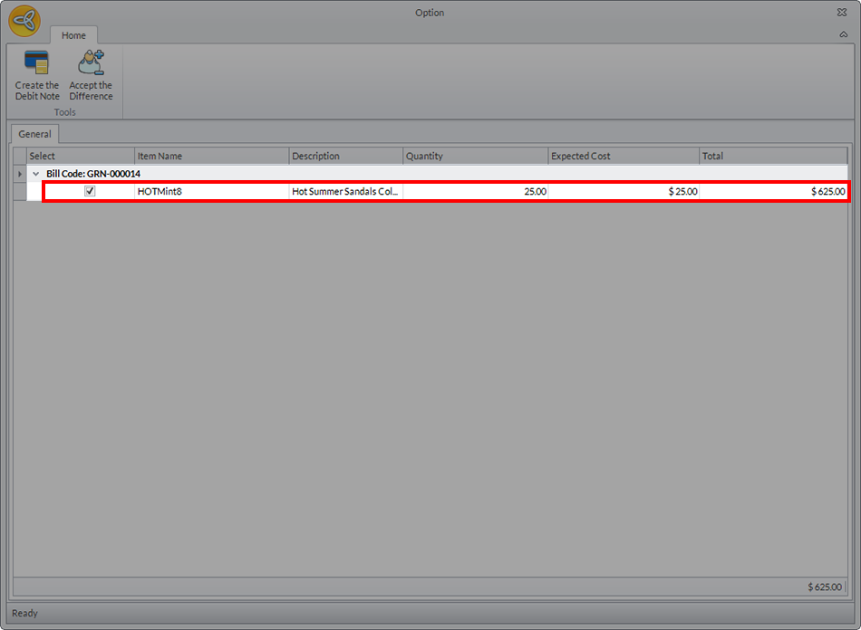 To process the excess items, click on the Create Debit Note button on located in the form.