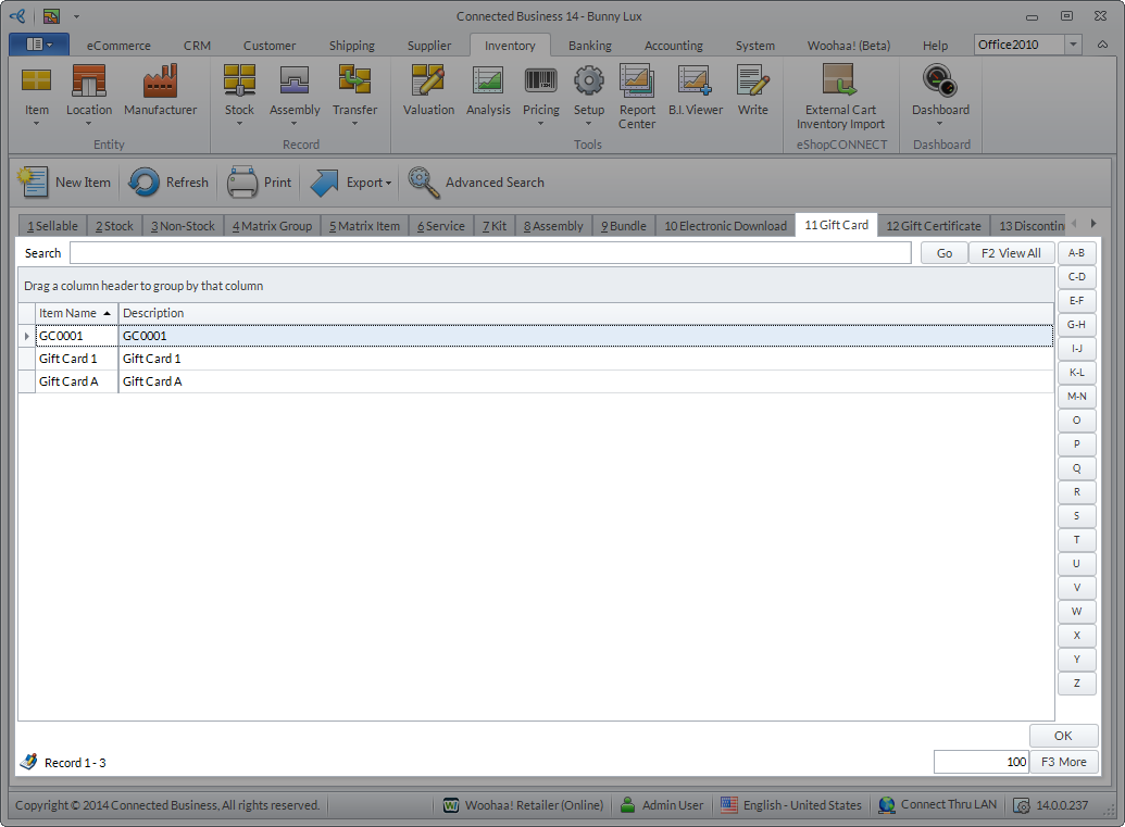 This article will demonstrate how to create a gift card in Connected Business.
