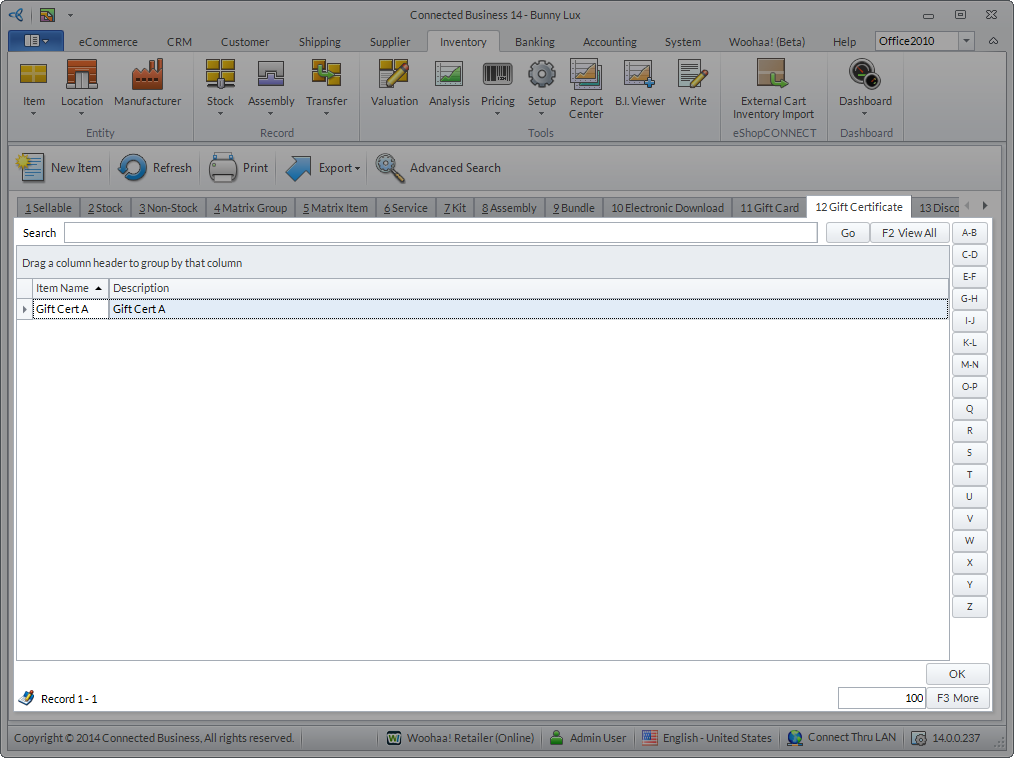 This article will demonstrate how to create a gift certificate in Connected Business.