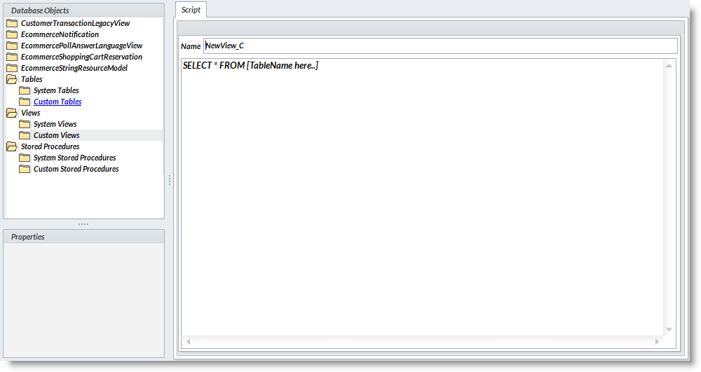 - On the Script tab, enter a description for the new custom view in the Name field.