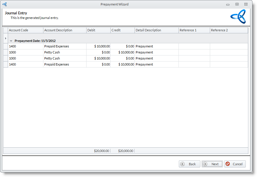 The actual journals to be done are listed in the wizard for completeness and will be saved to the unposted file. Click Next button to continue.