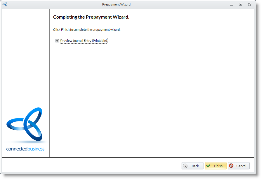 Step 5- You can choose to view the prepayment schedule you created. To view and close the wizard, click Finish button. The Print Preview of the created prepayment will display.