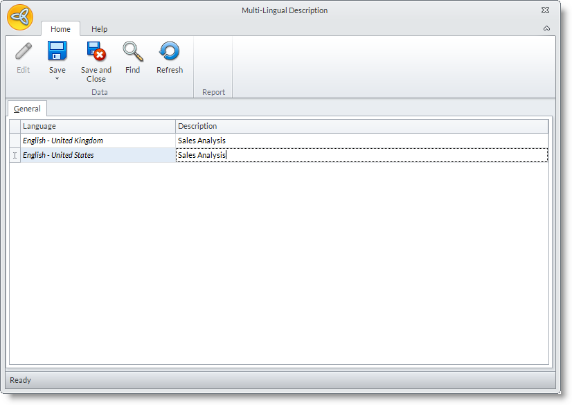 - In the Multilingual Description window, you may enter the description for each language currently used in Interprise Suite.