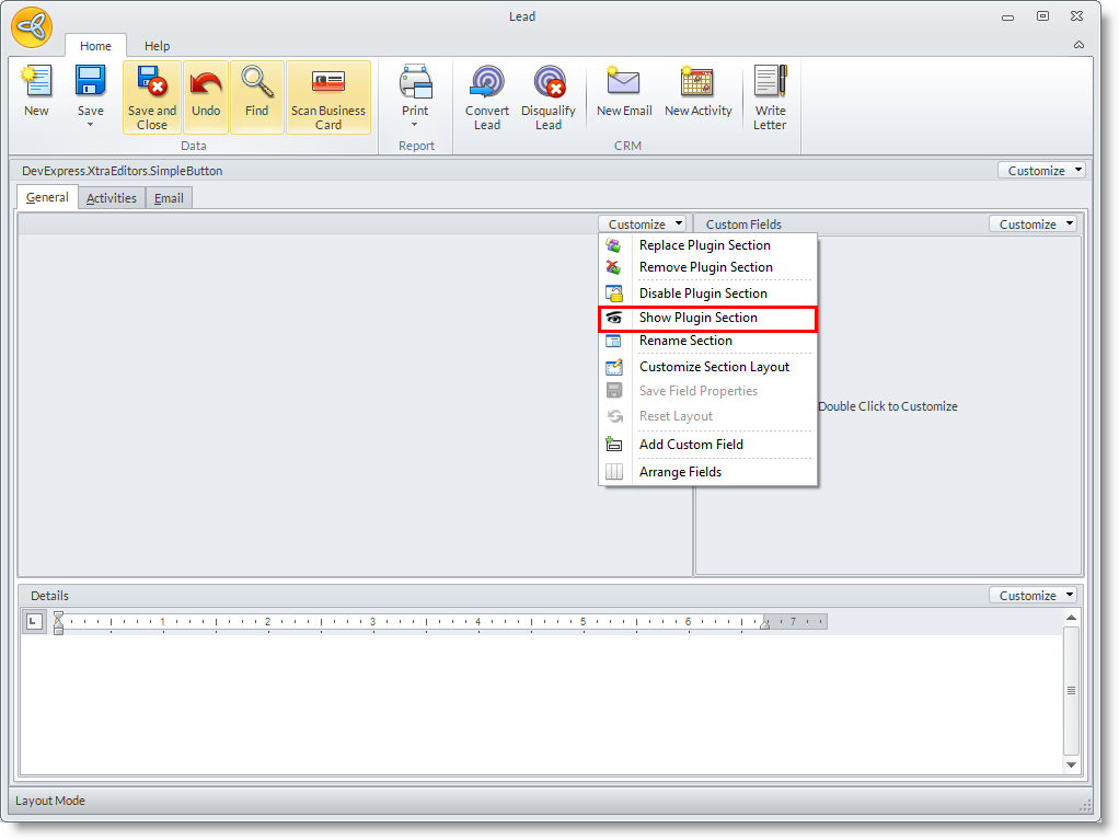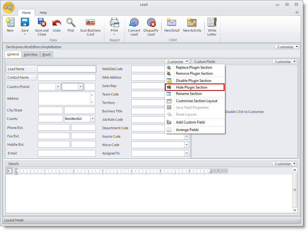 From here you may click the Customize dropdown list and select Disable Plugin Section.