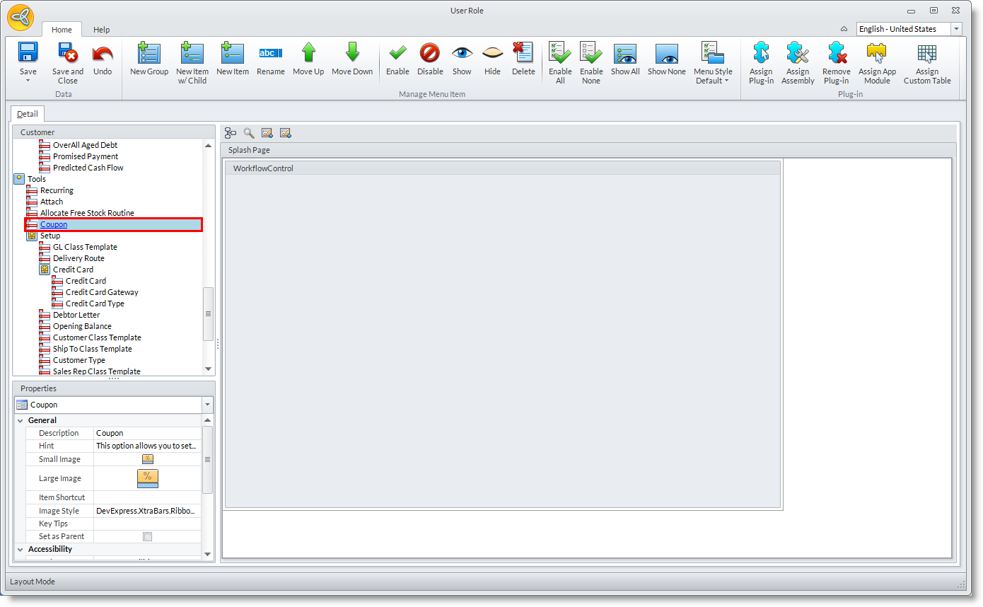 - The User Role form will be displayed. From here you can choose what module you wish to modify its forms. Double-click on a module to open the User Role layout form.