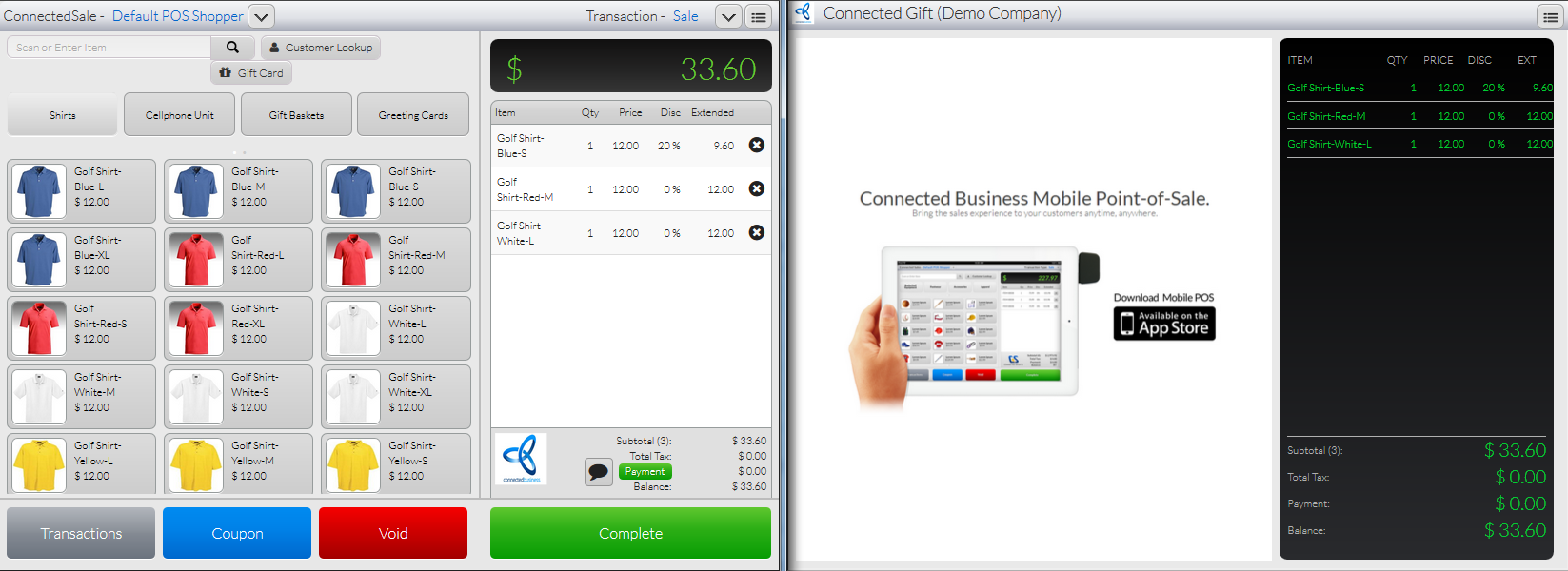 To compare, the image on the left shows the main POS , while the image on the right is the Secondary Display, mirroring the actions made from the main POS.
