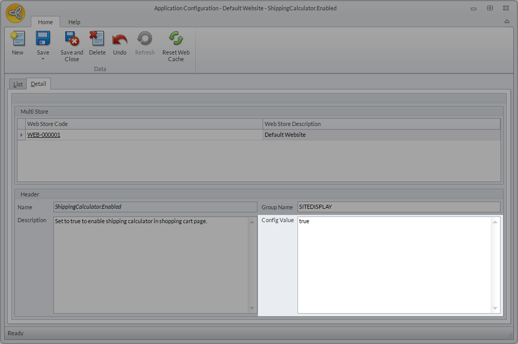 - Search for the ShippingCalculator.Enabled appconfig and view the configuration details.
