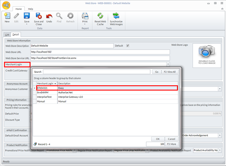 - In the Merchant Login field, select Eway from the dropdown list.