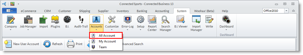 - From the System Manager module > Accounts > User Accounts.
