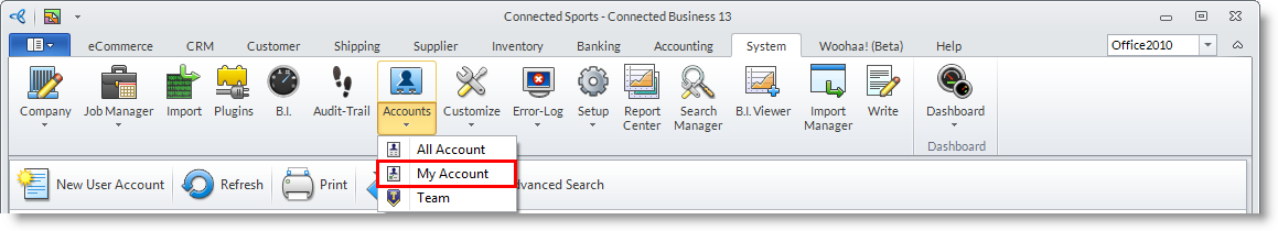 - From the System Manager Module > Accounts > My Account.