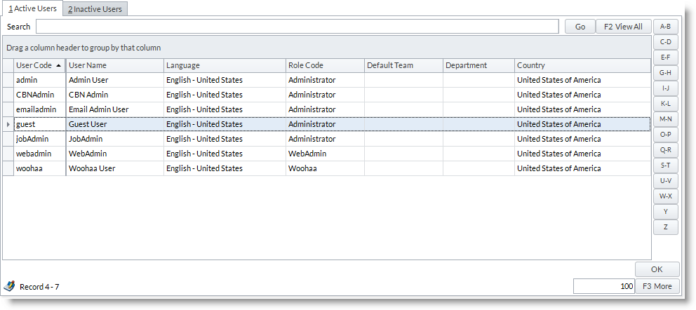 - The User Accounts list screen will be displayed.