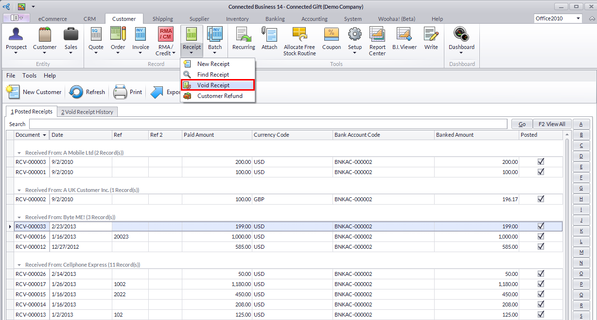 Void Customer Receipts