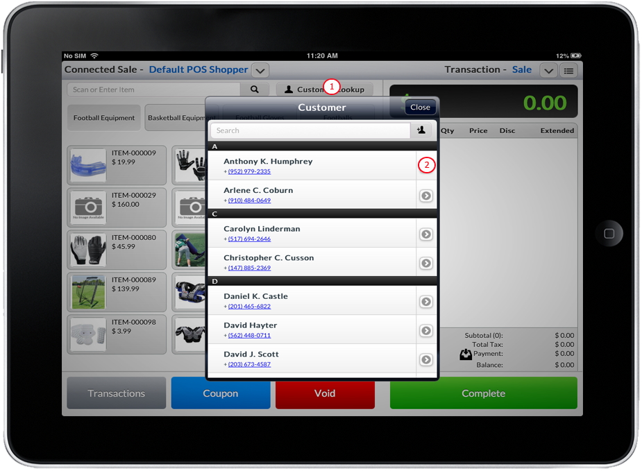 - Tap the Customer Lookup button or the Customer Name beside ConnectedSale header, Customer List will appear.