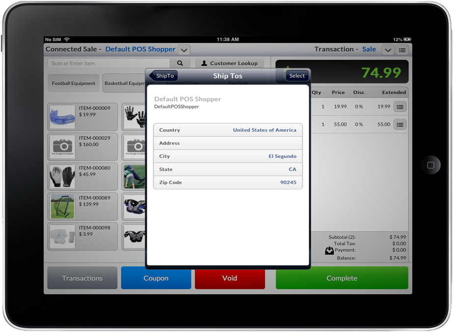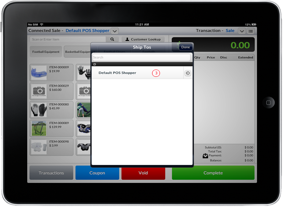 - Tap the desired address from the list or key in the search text field and press Return. Or tap on the arrow next to the shipping address on the list and the details will be displayed. Tap the “Select” button to assign the shipping address to the current transaction.