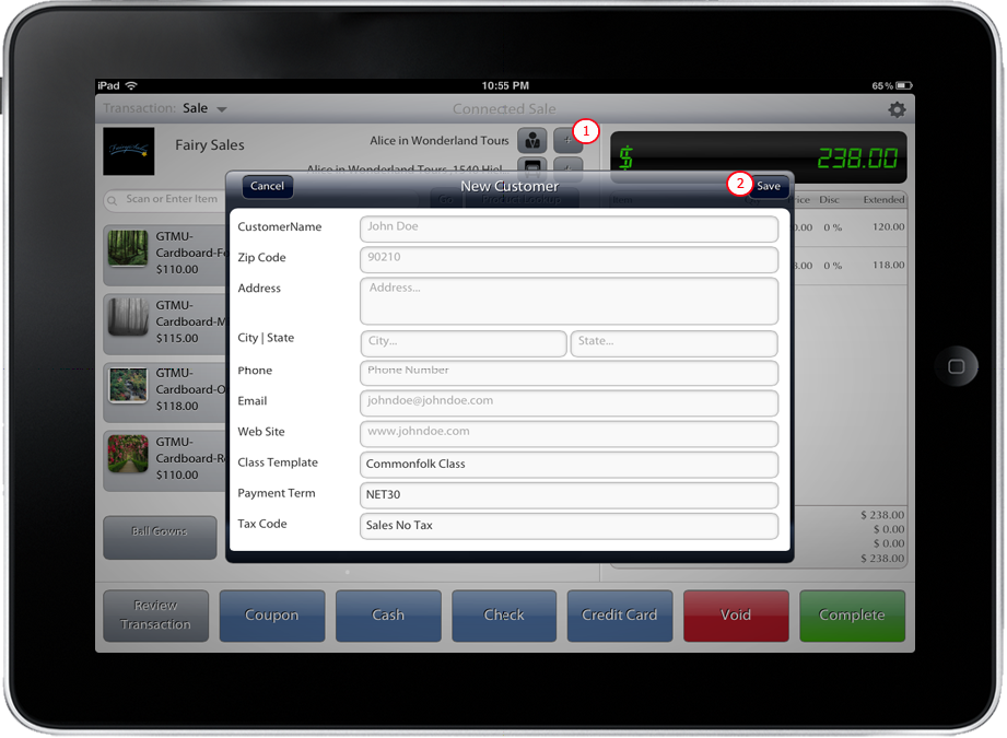 - Fill up the form and click Save button located at the upper right corner of the form. The newly created customer will be the current customer when you transact in ConnectedSale Mobile.