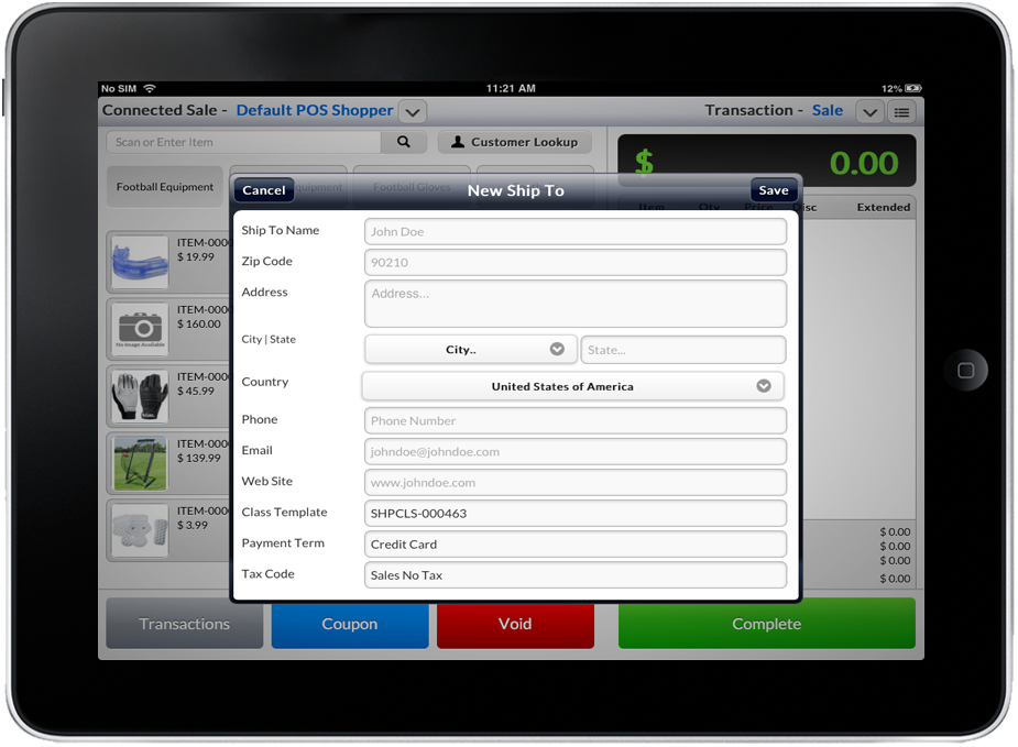 - Tap the Add Ship To button. The New Ship To form will pop up.