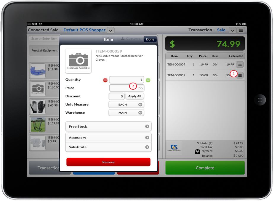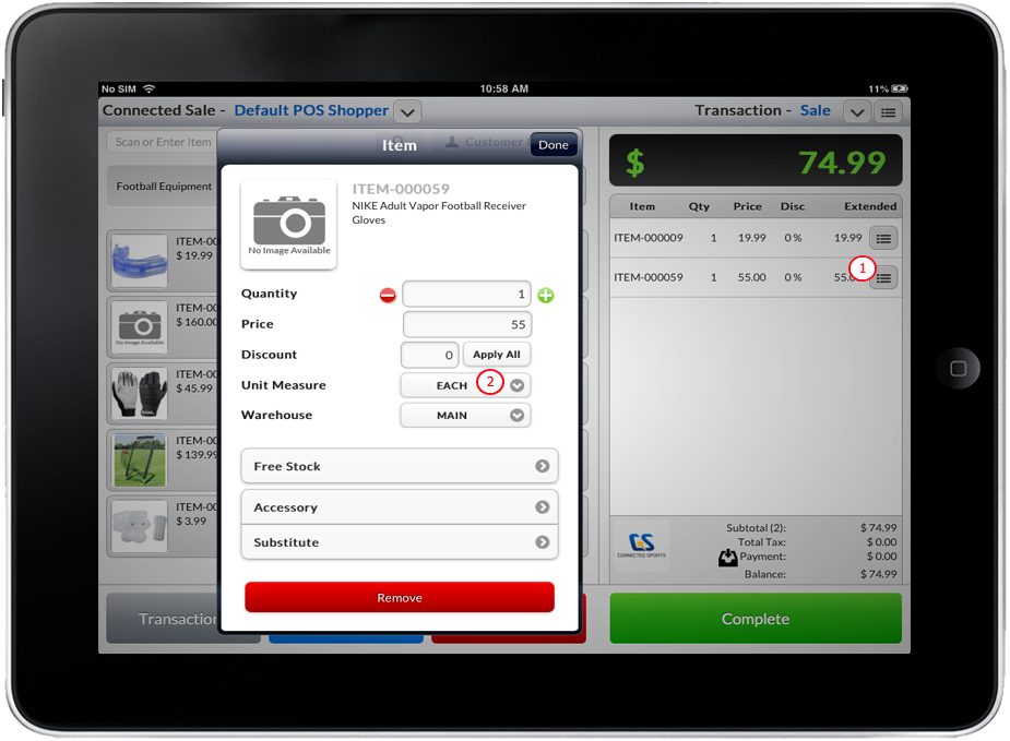 - To add items in the Mobile Connected Sale, refer to: Add an Item