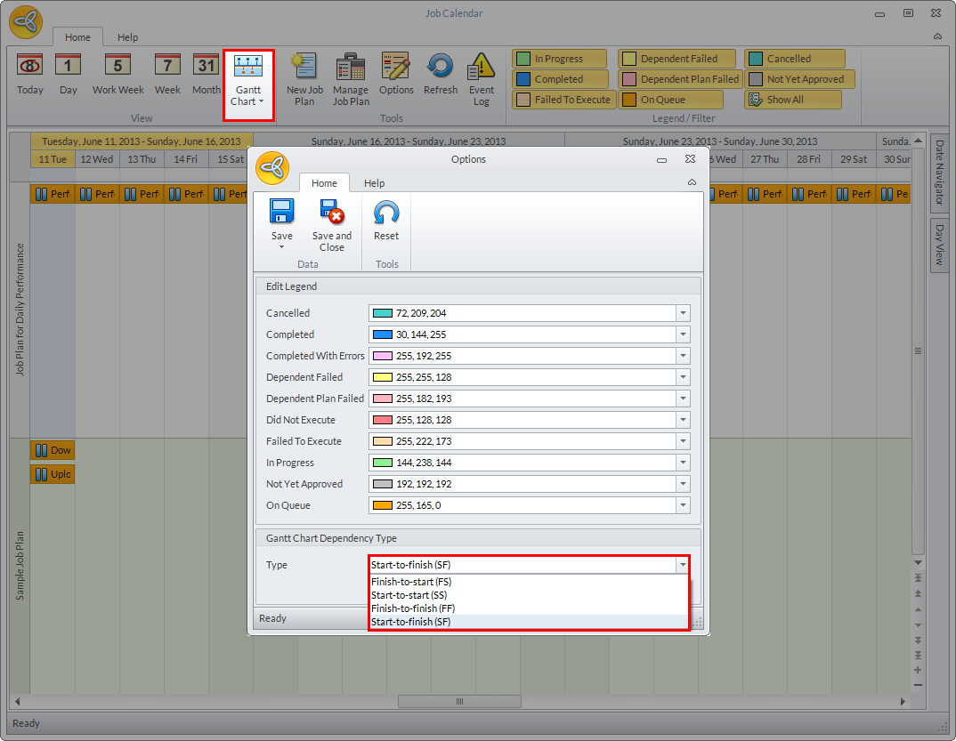 You may change the color of each job legends as needed by clicking the Options button from the menu.