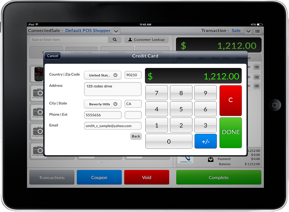 Additional credit card fields have been added in Connected Sale Mobile to accommodate secondary details such as address, telephone number and email address when manually creating order/sales transactions using credit cards. Moreover, these fields are essential as some credit card gateways are requiring these information to authorize the transaction.