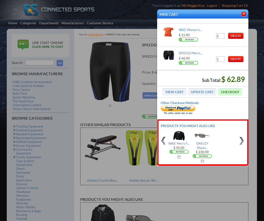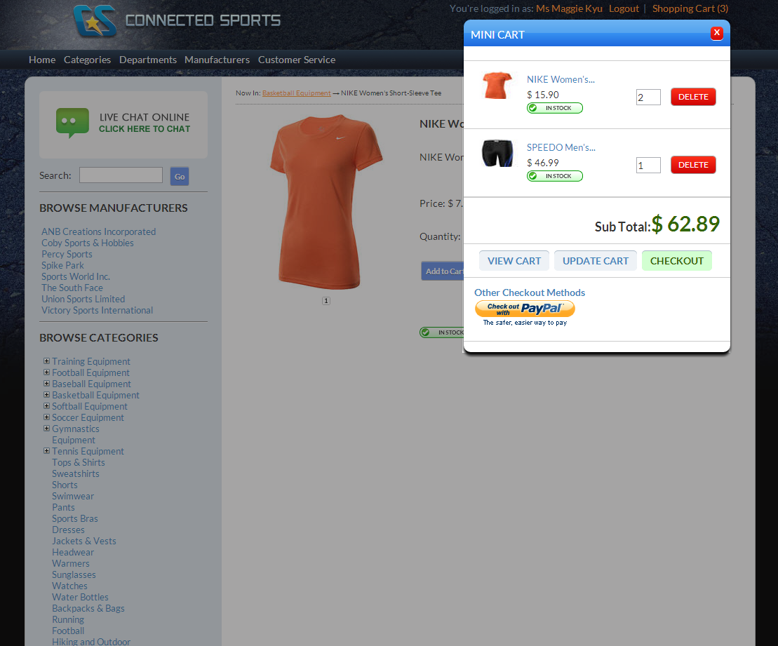 The mini cart is simply a smaller version of the shopping cart page with complete shopping cart functionality. This feature allows your customer to keep track of the items added to their cart without having to go to the shopping cart page. From the minicart, your customers can view, update item quantity and checkout the items.