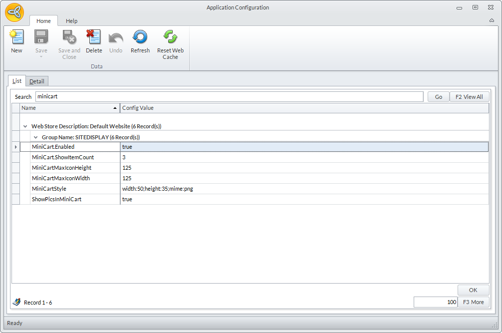 MiniCart.Enabled | If set to True, the minicart option will be enabled in the webstore. |