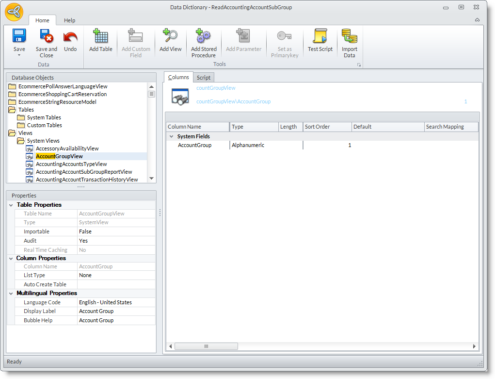 - The Database Objects List on the left lists all tables, views and stored procedures (from your existing system views and tables as well as custom views and tables created in the data dictionary).