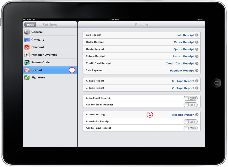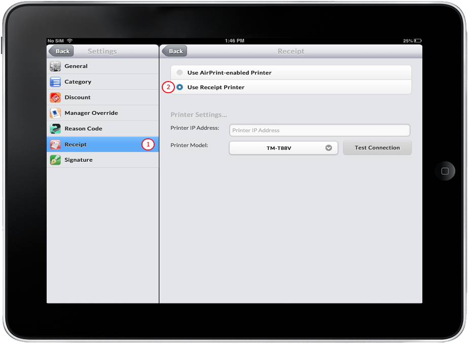 - Select Use Receipt Printer by tapping on it.