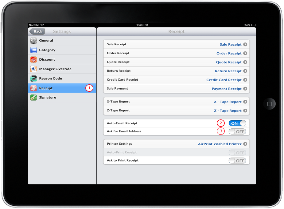 - Turn OFF the Auto-Email Receipt.