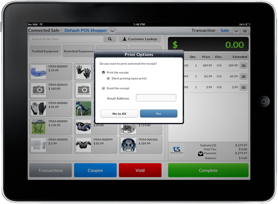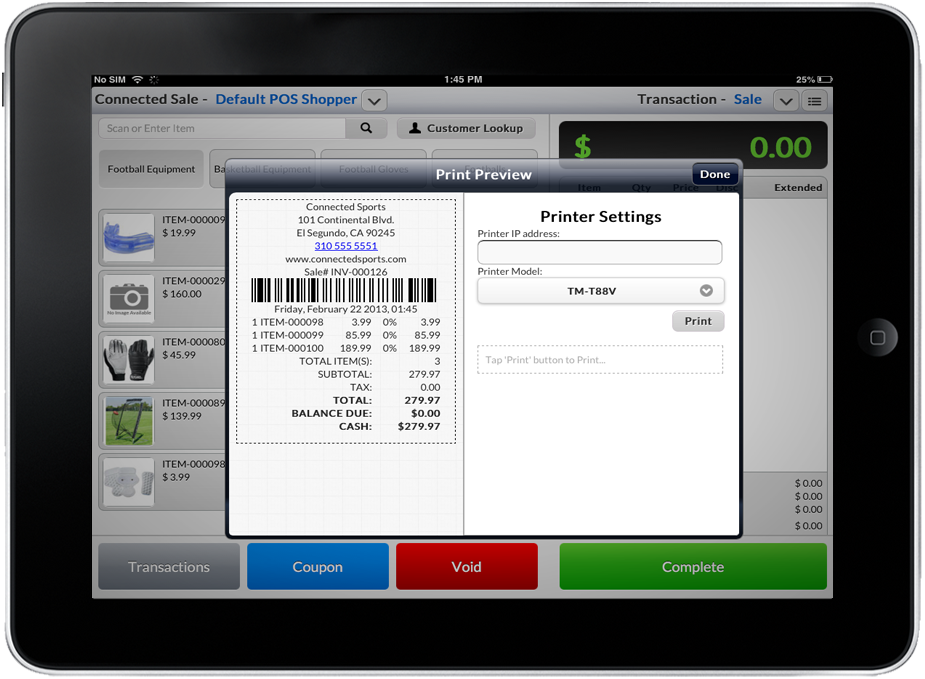 In this process, you will learn how to print receipts in Connected Sales such as print preview, silent print and emailing receipts.