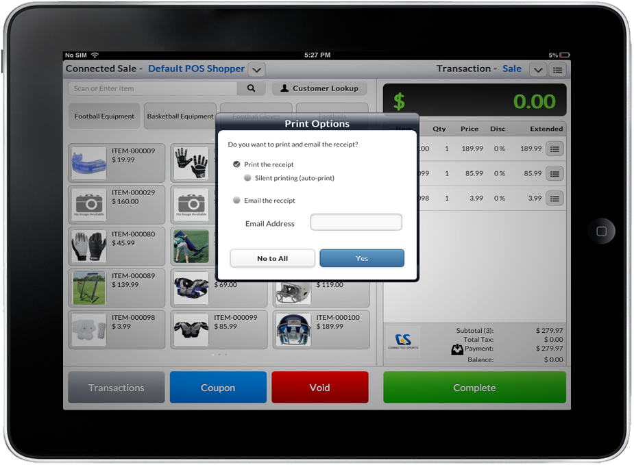 - Tap on Yes button to continue. Print Preview will appear and the receipt will be sent to the email address defined.