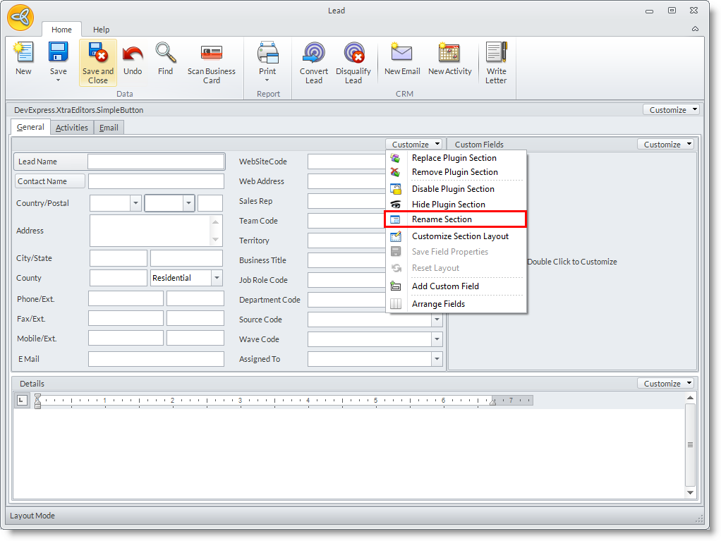 - There will be many forms from the Detail tab to select from. Right-click on an item and select Rename.