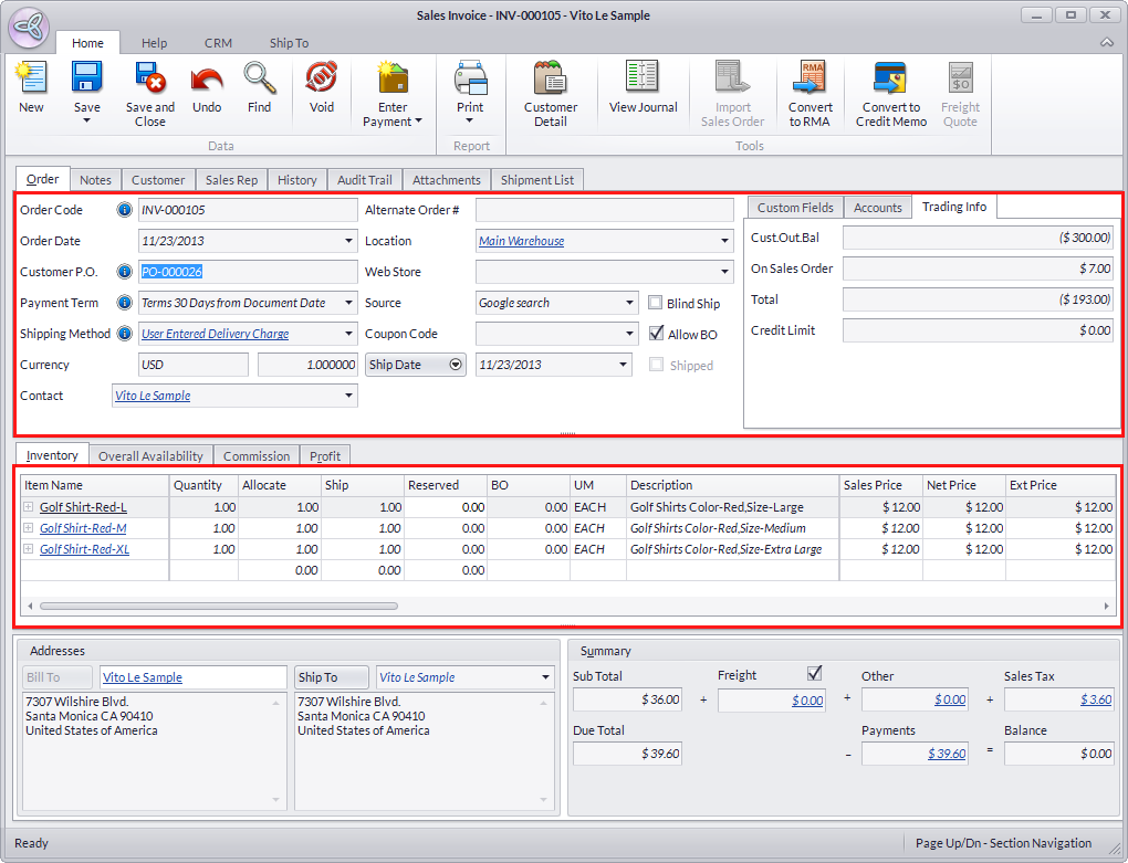 Customer PO is used by businesses to track purchasing transactions in Connected Business. This allows business owners to keep track of all sales transactions by cross-referencing the Customer PO to their own records. The value in the Customer PO is user-entered and it can be a value assigned by the business owner to track the sales transaction on their end.