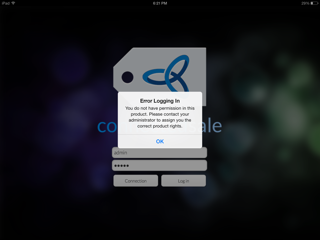 Attempts to access without Product Rights will return the following error prompt: