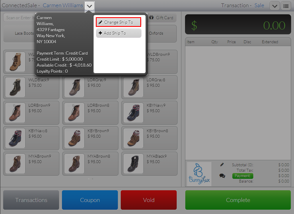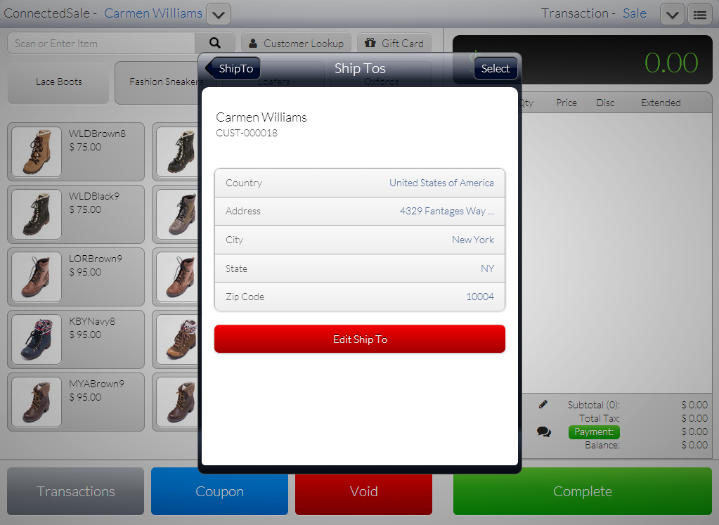- Tap Change Ship To. The Shipping Address list will be displayed.