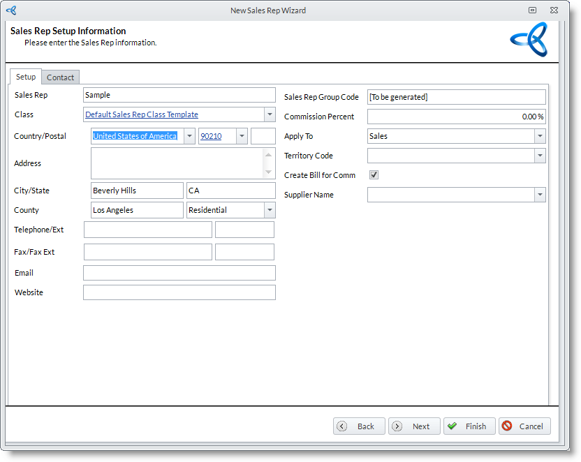 - This will open the New Sales Rep wizard wherein the new Sales Rep entity to create in the store is configured. Provide the details for this new Sales Rep entity.