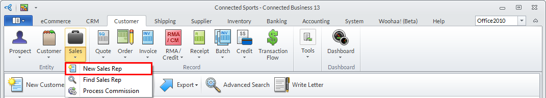 - From the Customer Module> Sales > New Sales Rep.