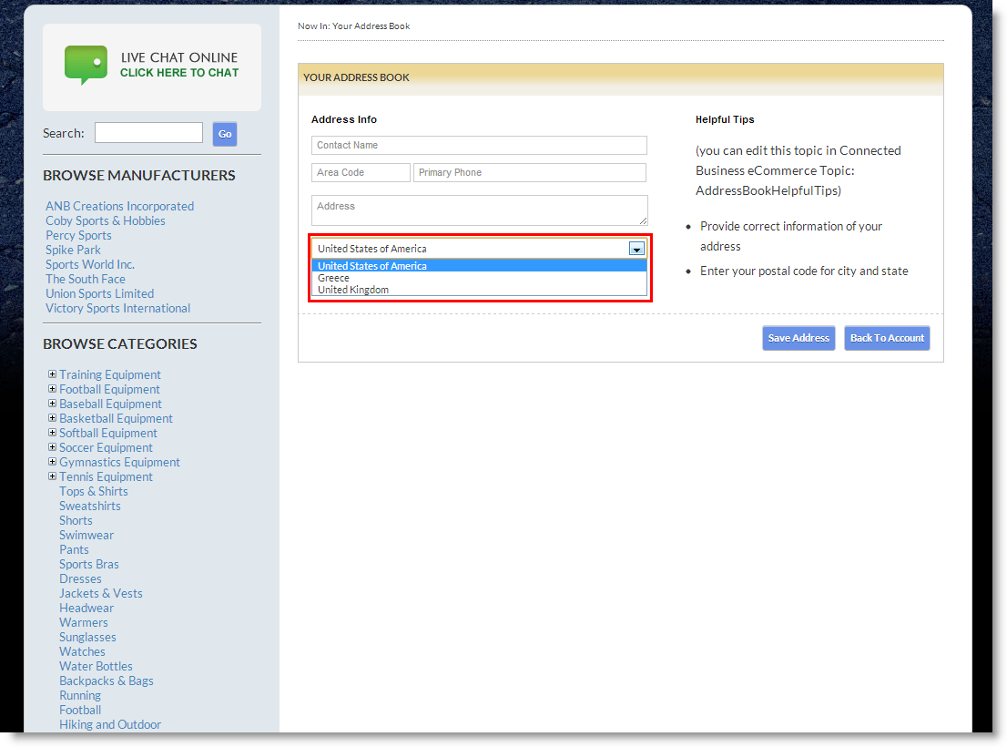 Note: Don’t confuse this with the Active checkbox. The Active checkbox, when unchecked, disables this country from being used in the whole system. - The country you selected to be shown on the webstore will be available on sign up forms that involve entering the country from dropdown lists.