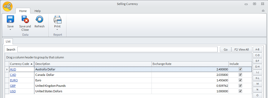 - From the Selling Currency form, make sure your preferred currency unit/s are included by putting checks on their corresponding checkboxes under the Include column.